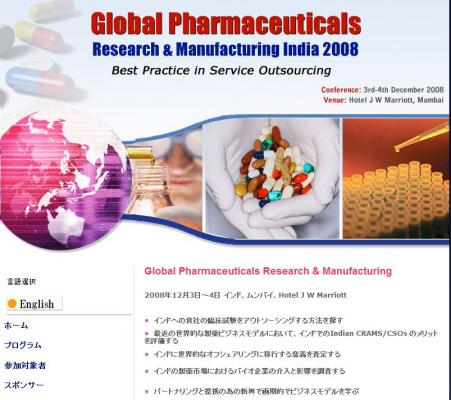 会議: 「Global Pharmaceuticals Research & Manufacturing India 2008」