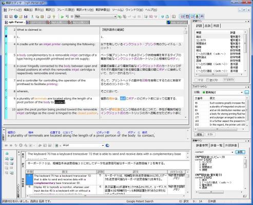 本製品は、特許翻訳のエキスパート(特許情報処理技術者や特許翻訳者)の経験とノウハウをベースに開発された、長文かつ難解な特許文書の特許原文前処理および翻訳文後処理機能の搭載により、一般の翻訳ソフトでは得られない訳出を提供する、特許明細書専用の翻訳ソフトです。