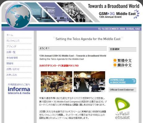 株式会社グローバル インフォメーションでは、皆様の利便性を図る為に、日本語、韓国語、中国語で「13th Annual GSM>3G Middle East - Towards a Broadband World」の情報を提供するとともに、会議の参加のお申し込みを承っております。