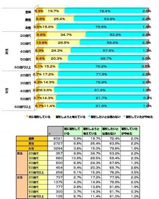 20歳代男性の「取引しようと考えている」は全体に比べ15.0ポイント高く、男女ともに若年層ほど「取引しようと考えている」比率が高い傾向にある。