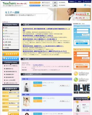 株式会社インフォトップマーケティング[http://www.infotop-m.jp/]が運営する『Teachers (ティーチャーズ)』[http://www.teachers.bz/]は、自分のノウハウや知識を伝えたい講師希望者とセミナーや教室などを開催したい講演依頼者が出会うマッチングサイトです。『Teachers (ティーチャーズ)』では本サイトの活用方法のご案内の一環として、今後、様々な講演・セミナーを実施します。