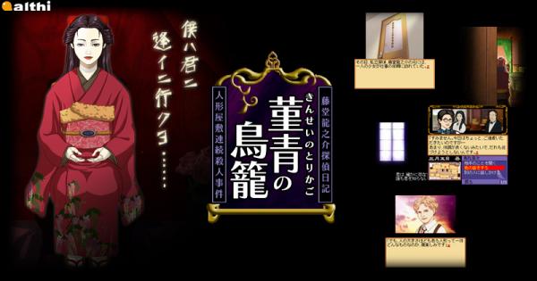 株式会社アルティは、大正時代を舞台とした推理アドベンチャーゲーム『藤堂龍之介探偵日記』シリーズ最新作、『菫青の鳥籠』(きんせいのとりかご)の有料ゲームアプリ配信を、2008年11月4日から「iモード(R)」および「Yahoo!ケータイ」公式サービスにて開始いたしました。