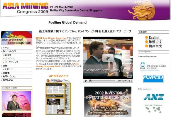 第5回Asia Mining Congressが2009年3月に開催されます。今回も、事業を成功に導くうえで不可欠なオリジナリティの高いコンテンツをお届けいたします。