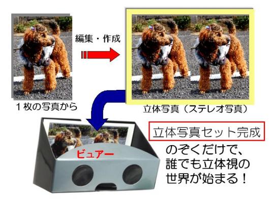 普通の写真などに立体成分を追加して、立体用の編集製作を行い