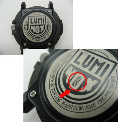 LUMI-NOXロゴの「O」の文字の中に001~200・300までのシリアルナンバーが刻印。