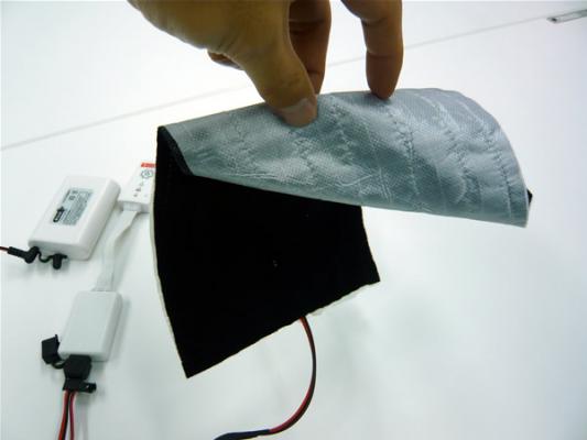 ヒーテックは寒冷地での防寒製品はもちろん、健康や医療製品など幅広い利用により多くの方たちに役立つ製品開発を行う可能性を持っています。ヒーテックとは・・薄く柔らかく軽量化された布状の電気ヒーティングシステムで、衣類、グローブ、寝具など、布をベースとした製品へ内蔵させることを可能にした画期的な暖房装置です。手のひらサイズの小型バッテリーで発熱させられるためコードレスでヒーティング機能を得ることができる最先端の暖房衣料の形と言えます。