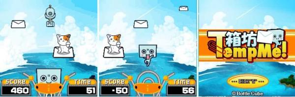 箱坊を撃ち出し、メールに乗せよう! ネコが乗っているものや、スパムメールの上には乗せないように箱坊をどんどん飛ばし、ハイスコアを狙おう!