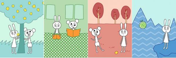 へんてこキャラクターたちの動き回る、8種類のへんてこシーンがセットです。
