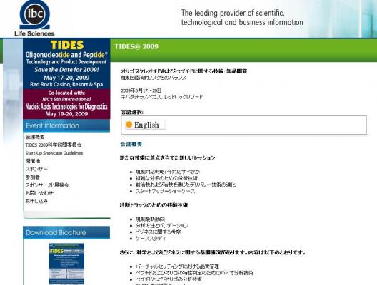 株式会社グローバル インフォメーションでは、皆様の利便性を図る為に、日本語、英語、韓国語、中国語、で「TIDES 2009」の情報を提供するとともに、会議の参加のお申し込みを承っております。