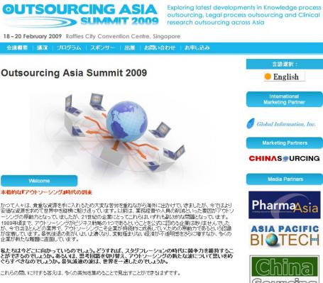 株式会社グローバル インフォメーションでは、皆様の利便性を図る為に、日本語、英語、韓国語、中国語で「Outsourcing Asia Summit 2009」の情報を提供するとともに、会議の参加のお申し込みを承っております。