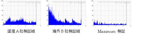 今回の測定では、 有名国産メーカーA社の数値は、合計181,278個、最大39個 海外メーカーB品の数値は、 合計285,138個、最大88個 比較し、Maximumの数値は、 合計50,214個、最大21個 と、Maximumは合計値では国産A社の約1/3以下、海外B社の約1/5以下、最大値でも、国産A社の約1/2、海外B社の約1/4となりました。