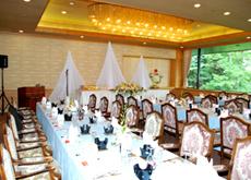 下の写真:真名カントリークラブの披露宴会場(コンペルーム)