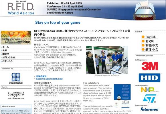 株式会社グローバル インフォメーションでは、皆様の利便性を図る為に、日本語、英語、韓国語、中国語で「RFID World Asia 2009」の情報を提供するとともに、会議の参加のお申し込みを承っております。