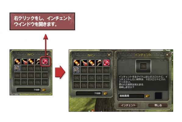 2.エンチャント材料を右クリックすると、インチェント用ウィンドウが開きます。