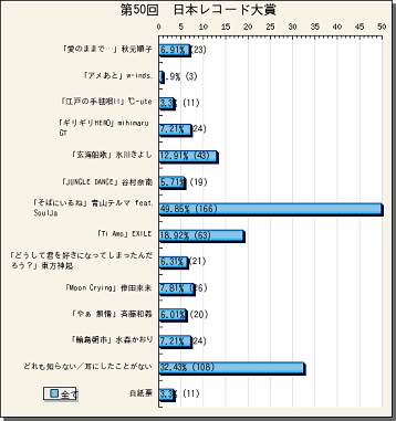 『第50回 日本レコード大賞』の途中結果をお知らせします。