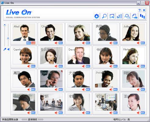 音声と映像の送受信のトラフィックを常に監視し、自動的に最適なデータ量を検出して通信を行うことにより、質の高い映像と音声を実現しております。また、他のユーザとファイルを共有できる資料共有機能、ホワイトボード機能、会議開催メール機能や議事録作成に最適な録音録画機能など、会議に欠かせない便利な機能を搭載しています。さらに簡単で使いやすいユーザインターフェイスを実現し、会議でよく使う機能はわかりやすい大きなアイコンで表示しました。パソコンが苦手な方でも簡単に操作することができ、複雑な操作を覚える必要がありません。簡単・高品質・高機能をお求めやすい価格でご提供いたします。
