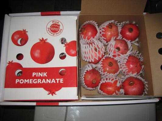 昔日本で秋にザクロが割れた頃が熟成して食べごろといわれていたが、これは熟成したというよりは、日本の秋は長雨が多いので水分が多く、それが理由で割れていたのですよ!