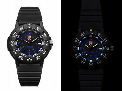 カラーは全部で3色。まずはミリタリーカラーを思わせる文字盤グリーンカラーに24時間タイムをイエローに施し、鮮やかながらルミノックスらしいミリタリーモデル。文字盤のフォントカラーを日本で人気の高いブルー、24時間計をグレー色に変え夏に向けていち早く手に入れておきたいモデル。更にフォントをレッドに変え、ルミノックスのロゴマークと相性抜群でインパクト大のモデルと、どれも細かなデザイン違いながらルミノックスネイビーシールズのベースデザインを大切に新たな進化を遂げます。