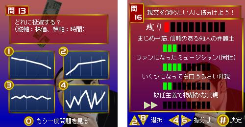 株価を見極める問題、人付き合いの振り幅を考える問題など、ユニークな質問に回答し、