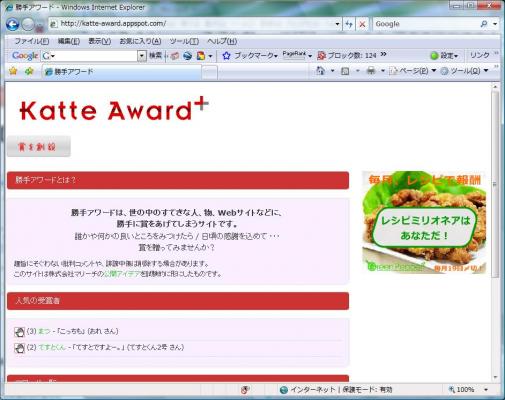 1. 勝手アワード (http://katte-award.appspot.com )(1)概要(http://www.marici.co.jp/idea/katteaward )