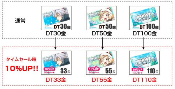 タイムセール期間のみ、対象のアイテムチケット(DT30金、50金、100金)が 10%増量いたします!