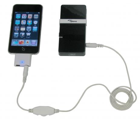 IPod指定のAVコンポジットビデオケーブルも、ポケットプロジェクターPK101に同梱されている汎用ケーブル(※2)も必要ありません。しかも、音量調整ダイヤル付です。ポケットプロジェクターの機動性をさらに高めるビデオケーブルです。