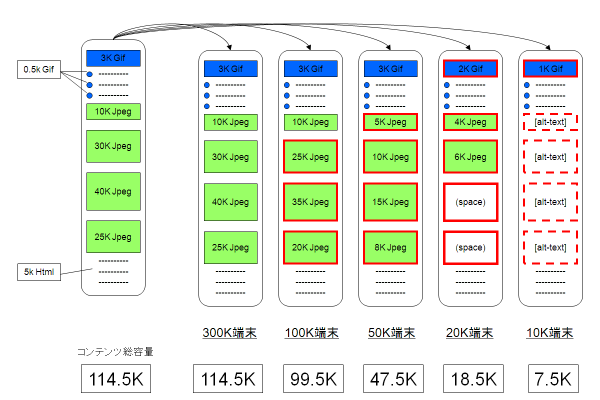 ・携帯端末個々のキャッシュ容量に合わせて画像サイズを容量調整