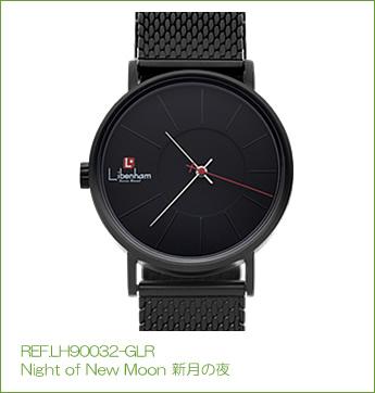 新月(New moon)の夜、空には月の光は無く景色さえも見えない漆黒の闇へと化します。物音すらしない静寂な夜をイメージしてカラー名を『Night of new moon』(新月の夜)としました。またその光景をイメージしてカラーはリベンハムでは初となるALLマット・ブラックを採用。オリジナルカラーのブラック(夜の暗闇)でも夜の光景は表現されていましたが、より漆黒の暗闇をリアルに表現するためにダイヤルはもちろん、ケース、インデックス、ケースサイドロゴ、さらにはメッシュストラップまでもマット・ブラック(PVD加工)にして『Night of new moon』を表現しました。
