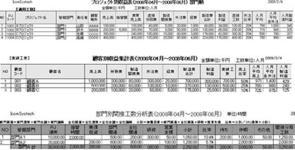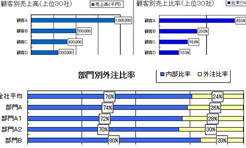 ☆各ジャンル別の経営指標が作成可能 顧客別の収益、業務ジャンル別の収益、「情報処理系」「組込み系」等の事業区分の収益など多面的な管理と比較が可能