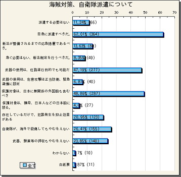 『海賊対策、自衛隊派遣について』の途中結果をお知らせします。