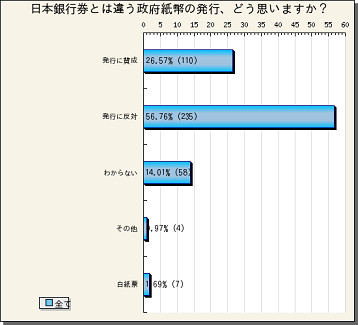 『日本銀行券とは違う政府紙幣の発行、どう思いますか?』の途中結果をお知らせします。