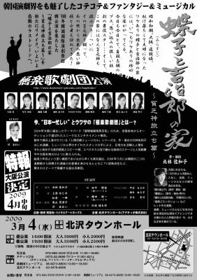 2008年韓国国際演劇祭招聘公演を果たした「蝶子と吉治郎の家~貧乏神純情篇~」を新たにリメイク。