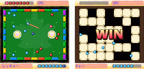 様々なボールや障害物をうまく使って、相手のボールを弾いて落とせ!全16ステージで白熱した戦いが楽しめる!