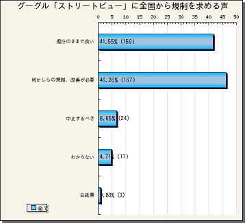 『グーグル「ストリートビュー」に全国から規制を求める声』の途中結果をお知らせします。