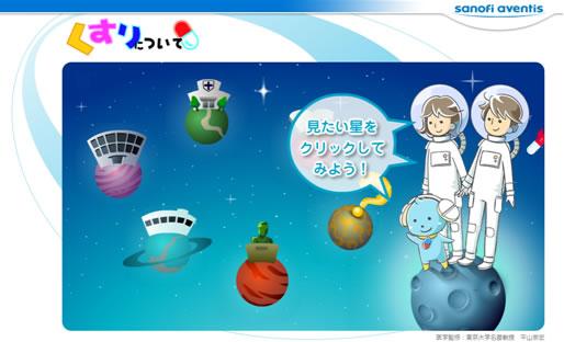 『くすりについて』[http://kodomo.sanofi-aventis.co.jp/] は、未来を担う子どもたちが健康の大切さを病気の予防や治療に使用される薬(くすり)から学習できるWEBサイトです。本サイトは2008年12月15日に全面リニューアルを果たしたことで、子どもたちが直感的に知りたい知識にたどり着けるように構成が再編成され、アニメーション・動画の導入によって、これまで以上に楽しく分かりやすく、子どもが薬(くすり)について学習できるユーザビリティーの高いサイトになりました。