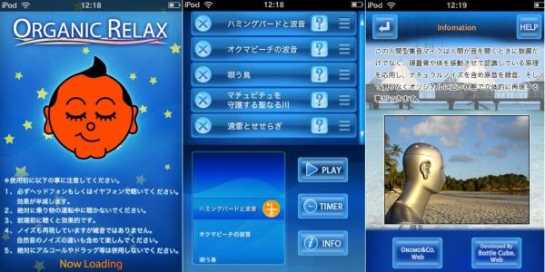 ORGANICRELAXは波の音や川のせせらぎ、鳥や虫の鳴き声などのありのままのナチュラルサウンドを聴くことにより、深いリラクゼーション効果が期待できるアプリケーションです。