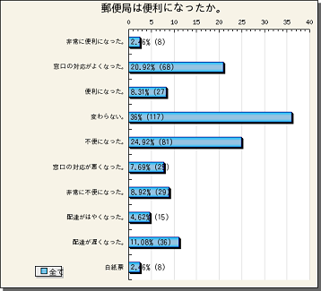 『郵便局は便利になったか。』の途中結果をお知らせします。