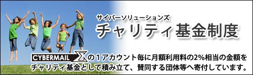 サイバーソリューションズ株式会社は、国内利用実績1,700社以上を誇る自社のメールシステムを基盤としたSaaSモデルのメールサービス「CYBERMAILΣ」を本年1月より提供開始いたしました。 この「CYBERMAILΣ」の1アカウント利用料毎(定価500円)の売り上げ金額の2%に相当する約10円をチャリティ基金として積み立て、賛同する各社会貢献団体等へ寄付を行ってまいります。