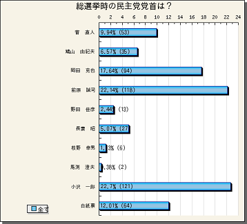 『総選挙時の民主党党首は?』の途中結果をお知らせします。