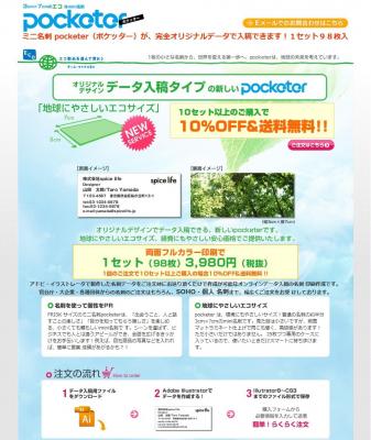 より自由にデザインミニ名刺を作成できる完全入稿タイプのpocketer(ポケッター)をオープンしました。 http://pocketer.info/eco/