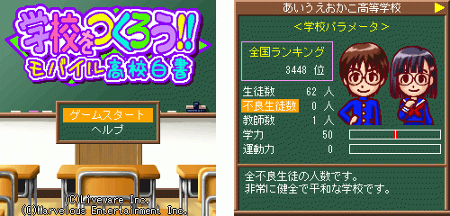 モバイルコンテンツの開発・配信を行う株式会社ライブウェア(本社:東京都新宿区、代表取締役社長:武内 智裕)は、 3月18日(水)にソフトバンクモバイル株式会社のYahoo!ケータイ公式メニュー「学校をつくろう!」内にて「学校をつくろう!モバイル高校白書」の配信を開始致しました。