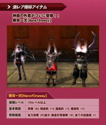 第1弾の目玉アイテムは、全勢力が装備可能な神器の外套(がいとう)装備、「無双一天」となっています。