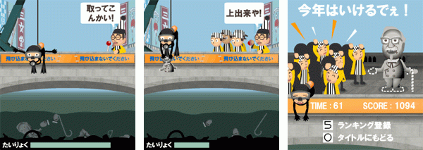 Yahoo!ケータイ⇒メニューリスト⇒ケータイゲーム⇒ゲームパック⇒フラッとオイデヨ三文堂⇒時事ネタ三文堂