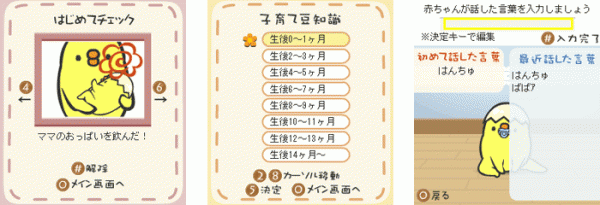 キャラクターの「ひよこのヒナ」は赤ちゃんが成長するとアイテムをもらったり、アクションが変化したり...??