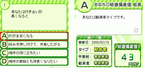 ・「血液型デジタル診断 -あなたの結婚偏差値編- A型」