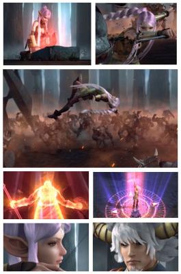 約1分半の映像では、ウィキン族の女性が神聖物を探す旅を続け、モンスターを倒して神聖物を手に入れたのもつかの間、同じ神聖物を狙う敵対種族、タオ族との戦いが始まろうとするというストーリーが描かれています。