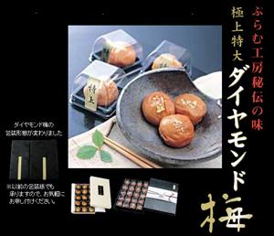 「ダイヤモンド梅」は、最高級の紀州南高梅の中から、さらに選りすぐった特大粒の希少な