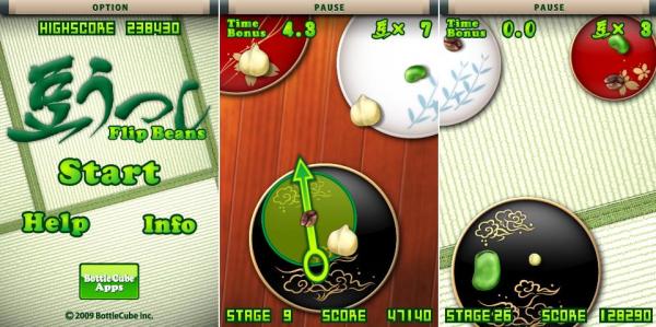 ■豆をはじいて隣の皿へ。和の心満載なアクションゲーム!「豆うつし」