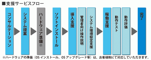 ソフトウェエア・パッケージをお客様環境に適用させるための事前調査をはじめ、パッケージのインストールや各種環境設定の支援、稼働テスト等の支援を実施致します。
