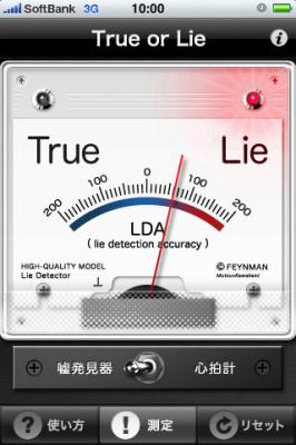 これまで「True or Lie」は、iPhoneだけで利用できましたが、より多くの人に嘘を見抜いていただきたいと、iPod touch(第二世代)にも対応しました。
